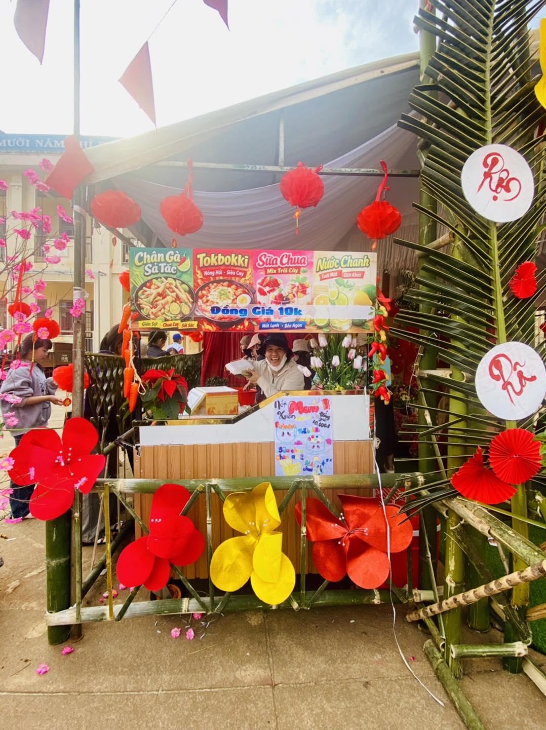 Hội xuân là dịp để các em học sinh được trải nghiệm những nét đẹp văn hóa truyền thống thông qua các gian hàng ẩm thực mang đậm hương vị quê hương. Tại đây, các em không chỉ được thưởng thức những món ăn dân dã, hấp dẫn mà còn trực tiếp tham gia chế biến, trưng bày và giới thiệu sản phẩm của lớp mình.