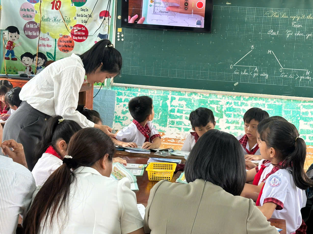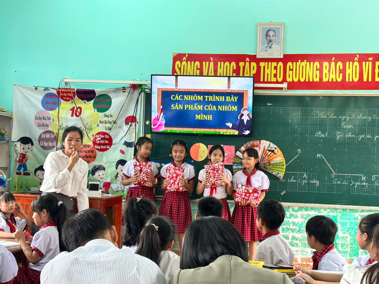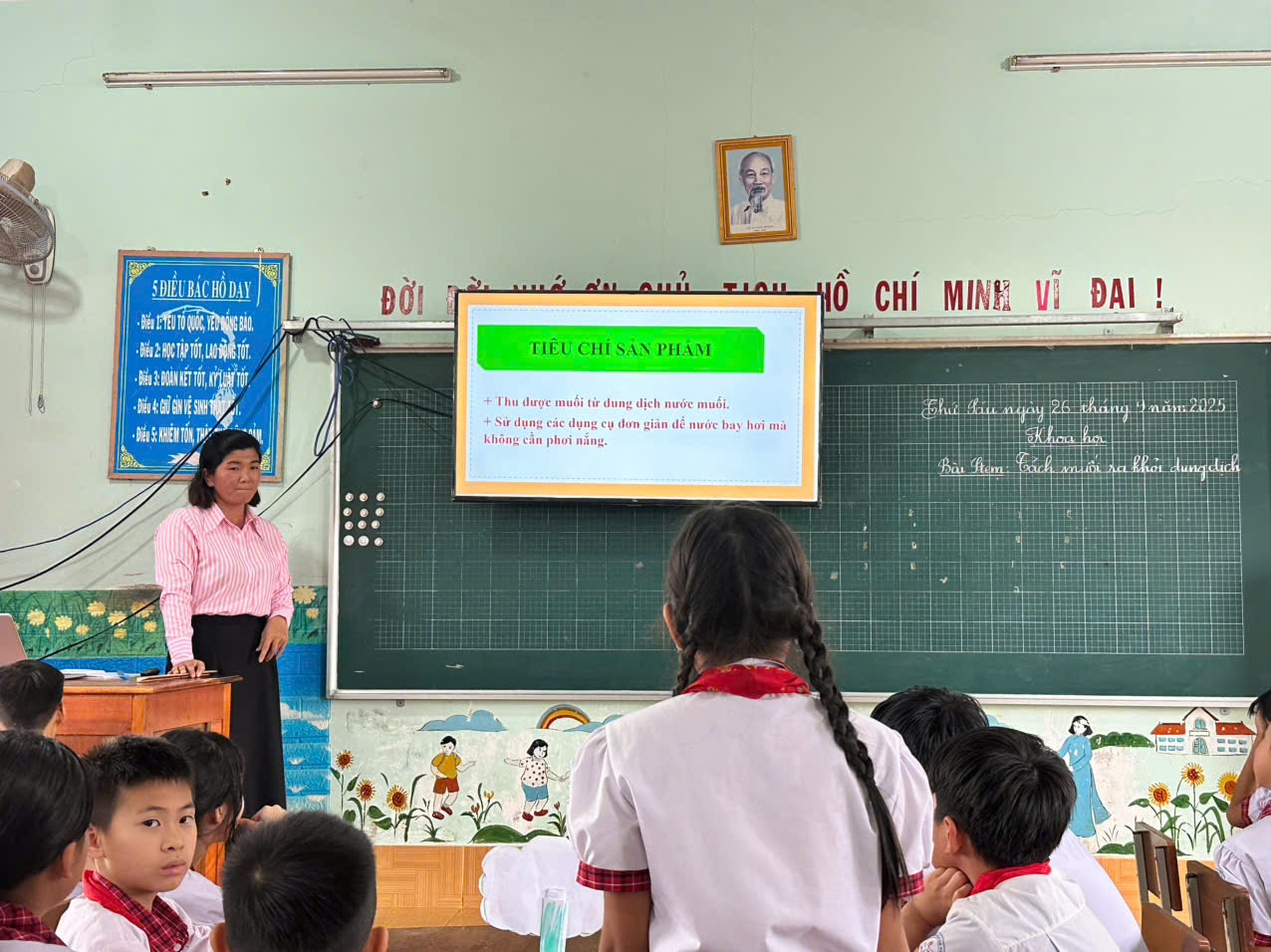 Chiều ngày 26/9/2025 Giáo viên trường tiểu học Nguyễn Bỉnh Khiêm có buổi sinh hoạt chuyên môn cấp trường, với bài học STEM dành cho học sinh lớp 4 môn Toán “Góc nhọn, góc tù, góc bẹt” tích hợp stem phần 1 do cô giáo Trần Thị Nhẫn thực hiện. Bài học Stem lớp 5 do cô giáo Nguyễn Thị Tân thực hiện môn Khoa học: ” Hỗn hợp và dung dịch lồng ghép Stem tách muối ra khỏi dung dịch”. Đây là một trải nghiệm đầy ý nghĩa, không chỉ tạo cơ hội học tập cho học sinh, mà còn là cơ hội phát triển chuyên môn vững chắc cho giáo viên trong quá trình đổi mới phương pháp dạy học